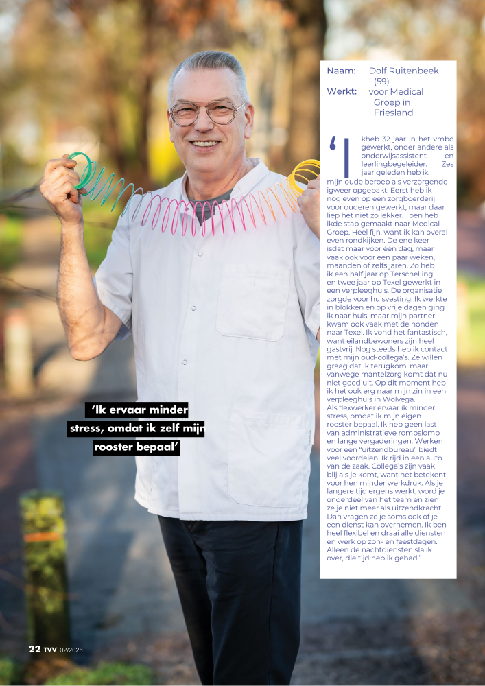 In TVV-magazine vertelden onze zorgcollega's Jolanda van ’t Klooster en Dolf Ruitenbeek hoe dat er in de praktijk uitziet. Zonder grote woorden, gewoon zoals het is.