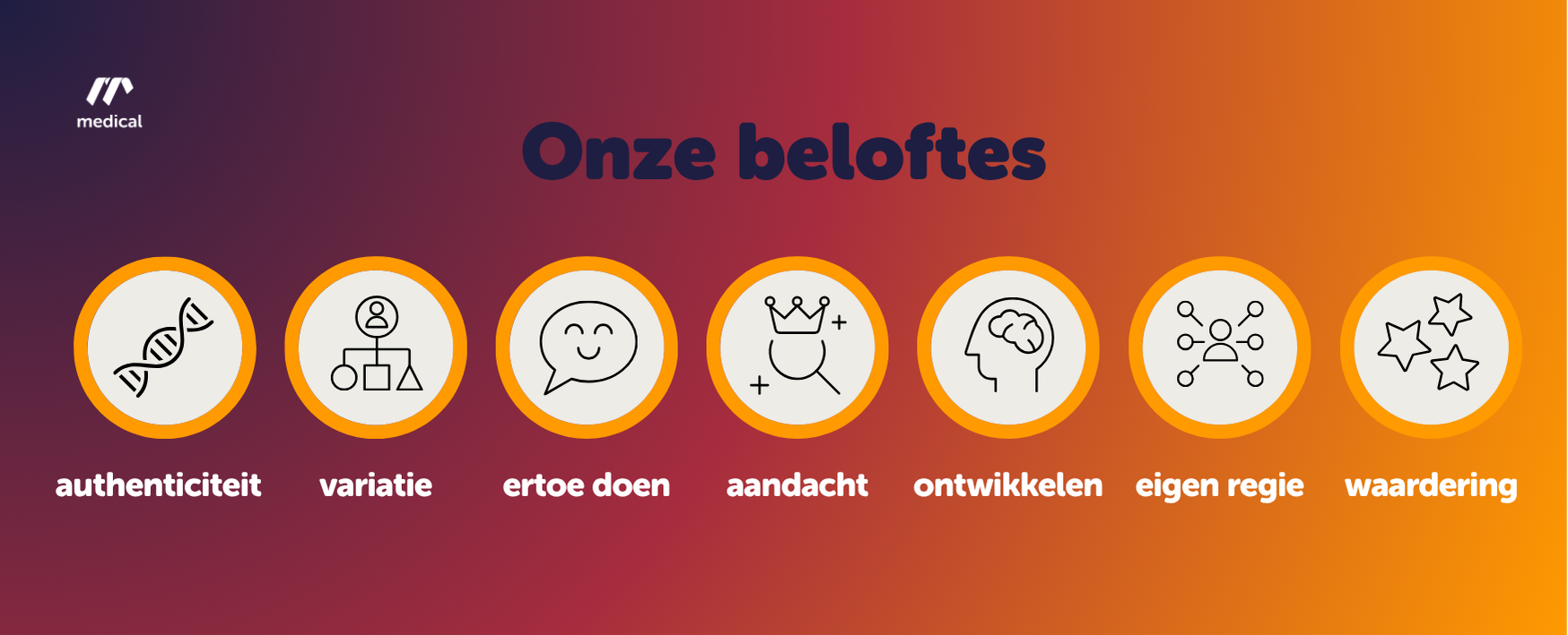 Wat dat concreet betekent, is nu samengevat in zeven beloftes. Deze nieuwe beloftes maken direct duidelijk waar Medical voor staat, zodat iedereen, en vooral wie op zoek is naar een nieuwe uitdaging, weet wat er te verwachten valt.